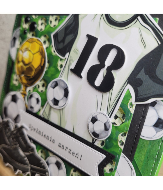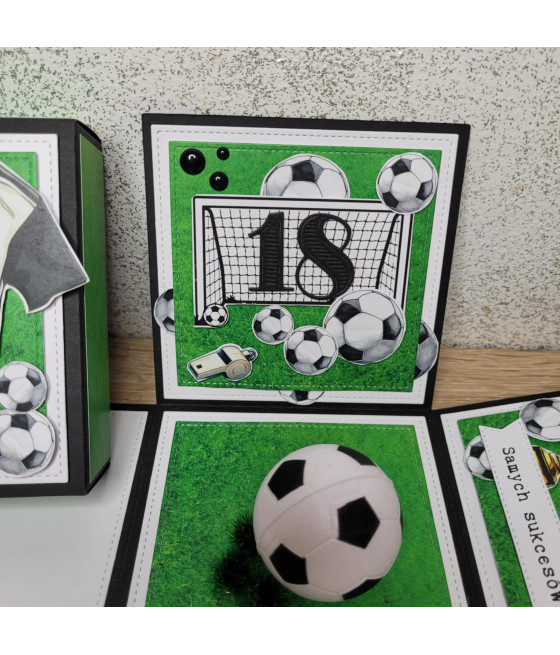 Składana kartka harmonijkowa dla młodego piłkarza, na 18 urodziny.