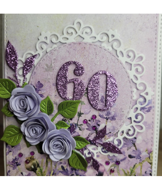 Fioletowa kartka, 60 urodziny, kwiaty,...