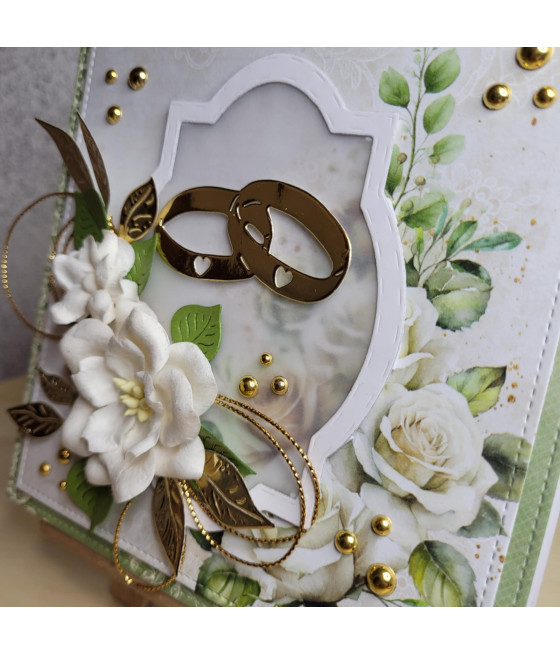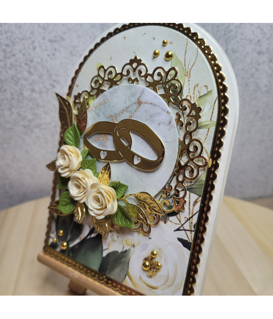 Zielono-złota kartka na Ślub, obrączki,...