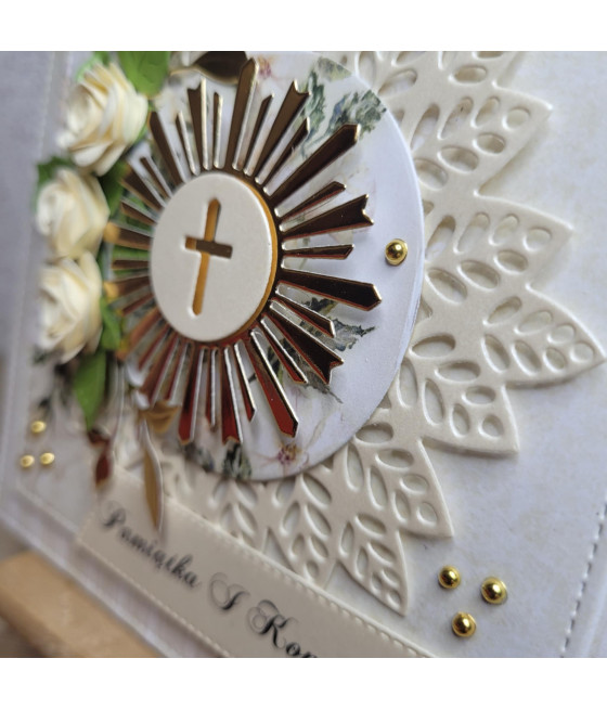 Kremowa kartka na Komunię, IHS, handmade