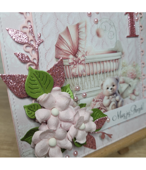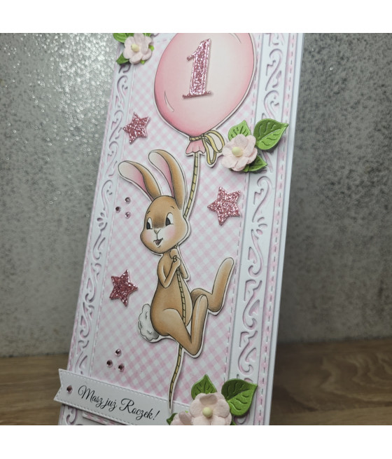 Różowo-biała kartka na Boże Narodzenie,...